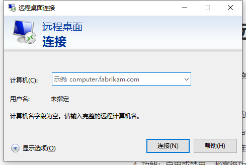 当远程桌面连接应用程序打开后,你需要键入服务器名称或IP地址,并单击“连接”按钮。此时,你需要提供Windows服务器的管理员凭据以进行身份验证和访问。输入用户名和密码以登录到服务器。