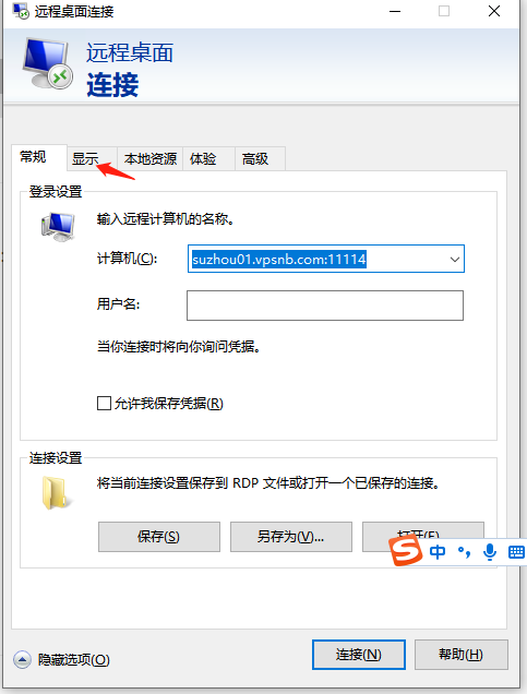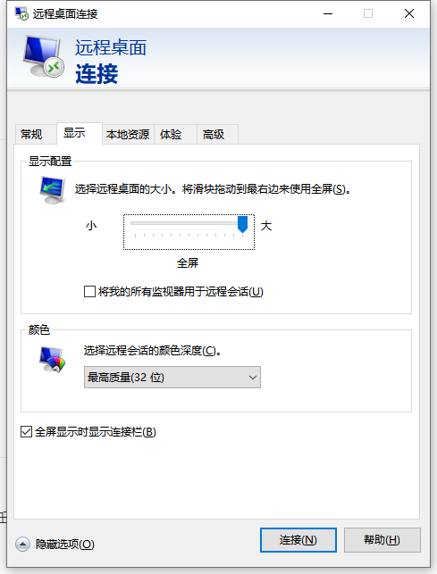 在第一次连接到远程Windows服务器时,应该对远程桌面连接进行一些设置。单击“显示选项”按钮,之后可以配置以下选项: