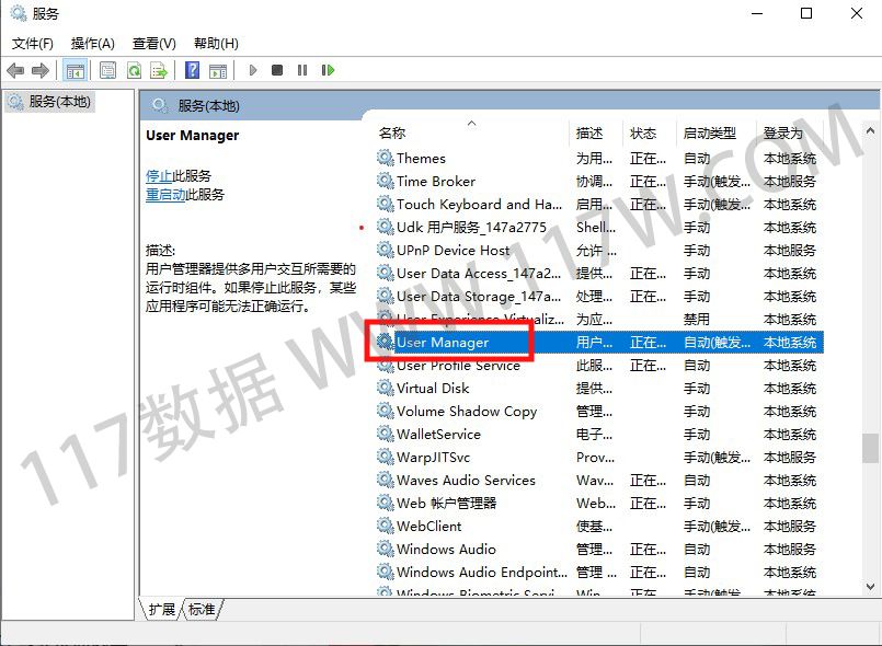 3.在【服务】中找到【User Manager】后双击进入User Manager配置界面。