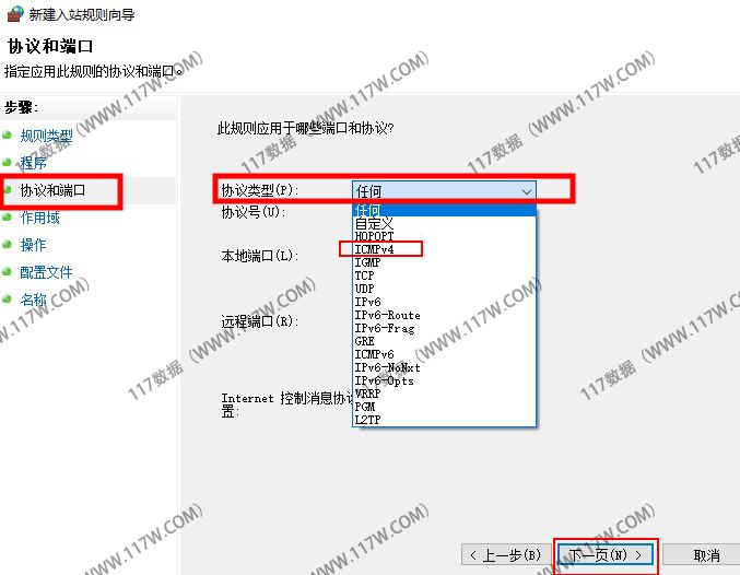 选择【ICMPv4】或【ICMPv6】,并点击下一步。(如下图所示)