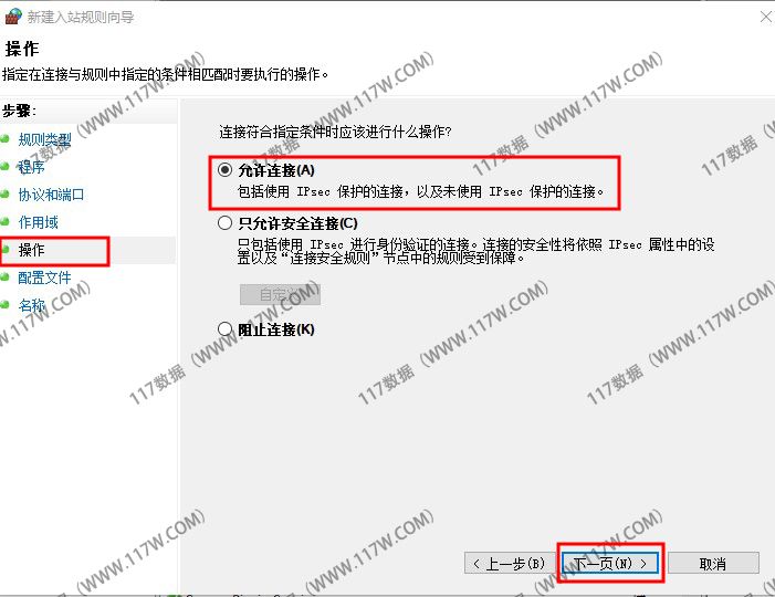 选择"允许连接"并点击下一步。(如下图所示)