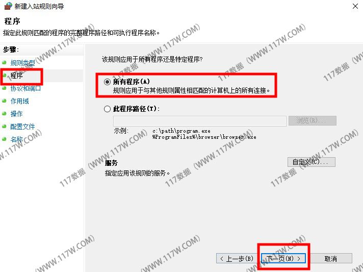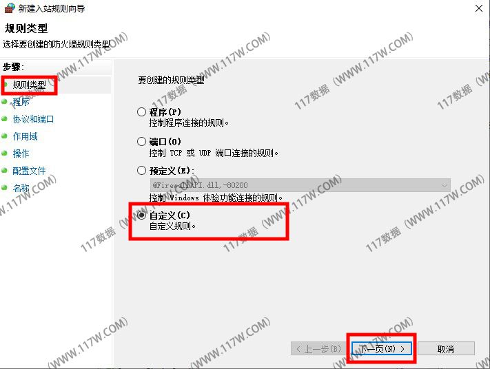 在新建规则中选择【自定义】后点击下一步。(如下图所示)
